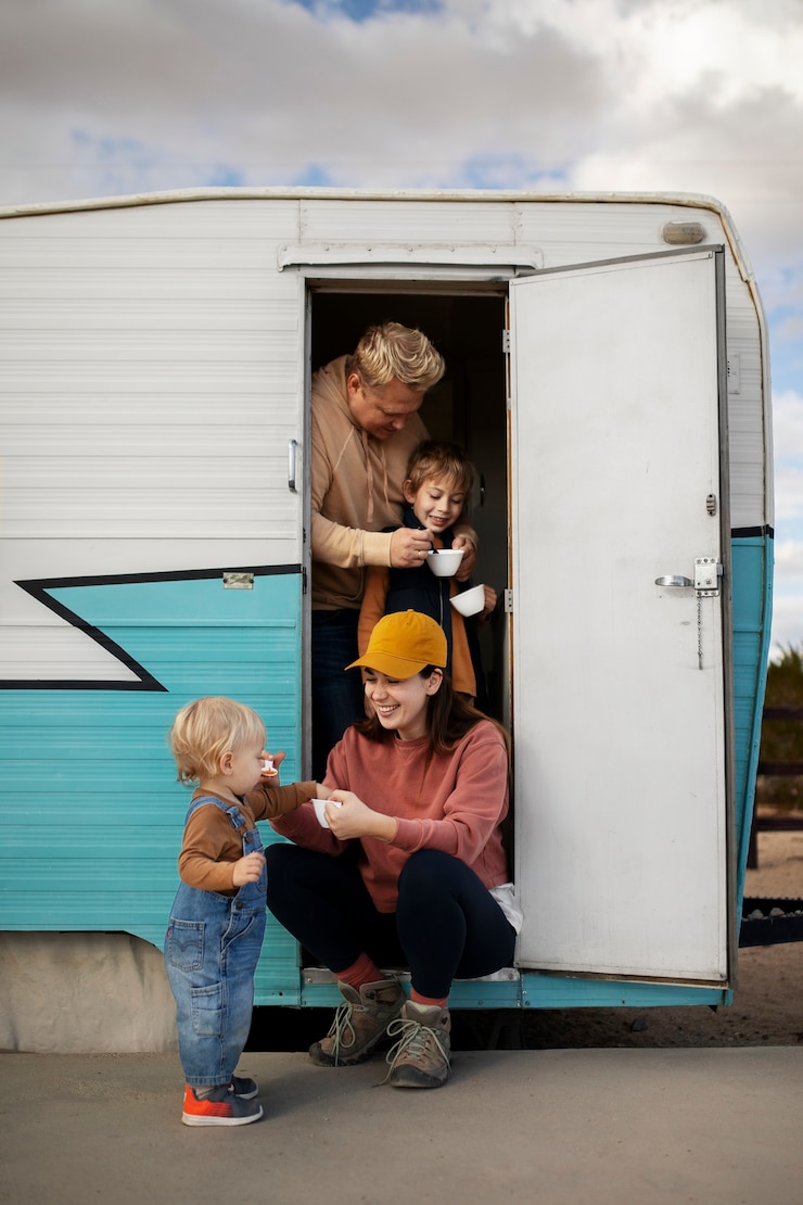 Внутри всё настроено иначе: автодом рассчитан на проживание четырёх человек. Передние поворотные кресла превращаются в обеденную зону, а спальнeе места – в трансформируемые двухъярусные кровати.